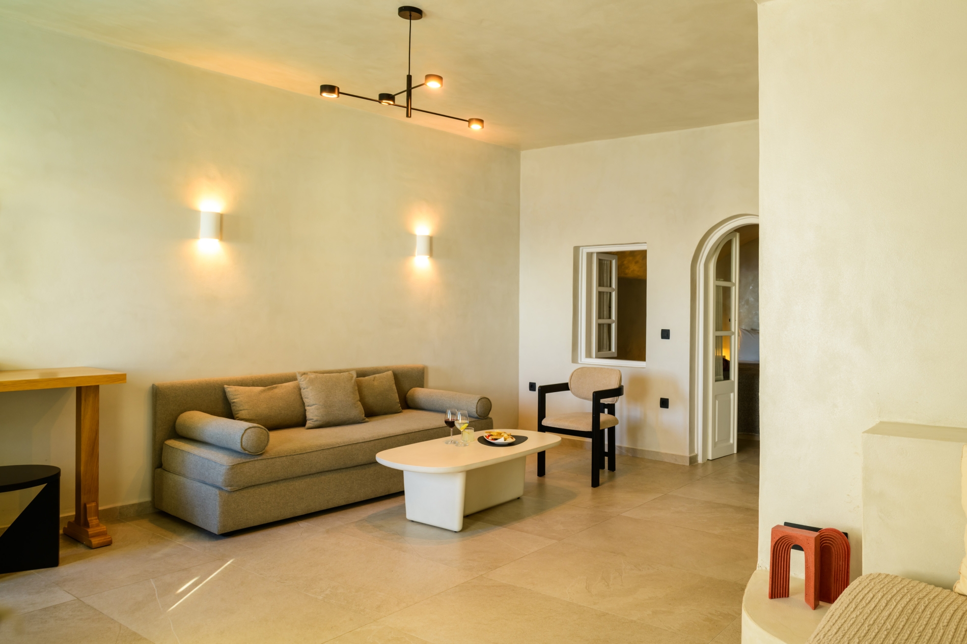 With breathtaking views of the Caldera, the Honeymoon Suite offers a serene and intimate escape, making it the ideal choice for couples or small families seeking an unforgettable luxury experience in Santorini.