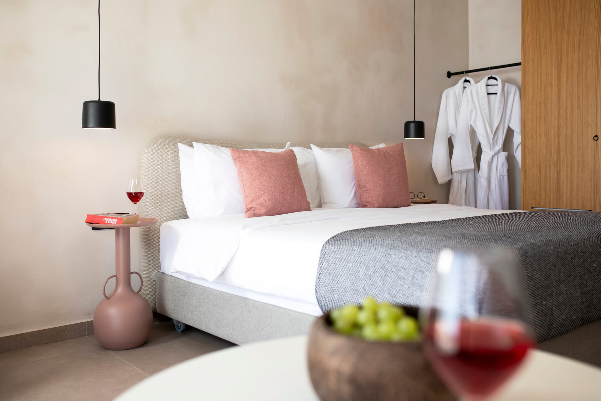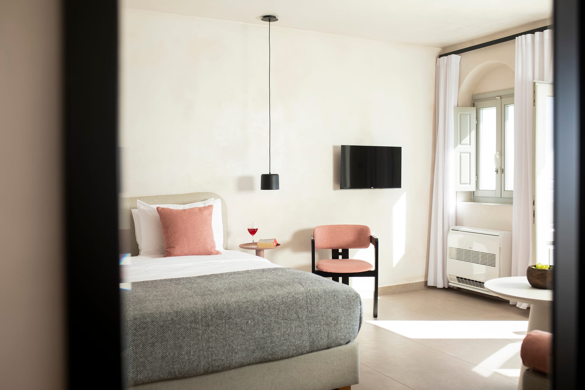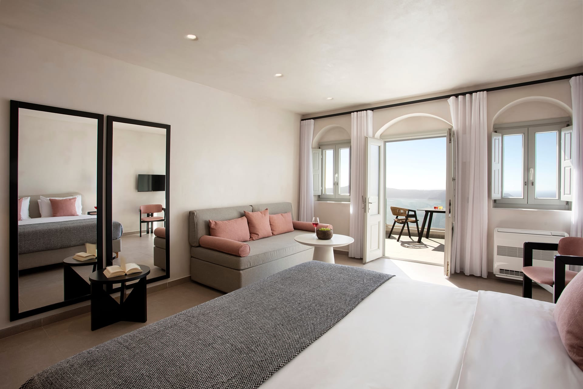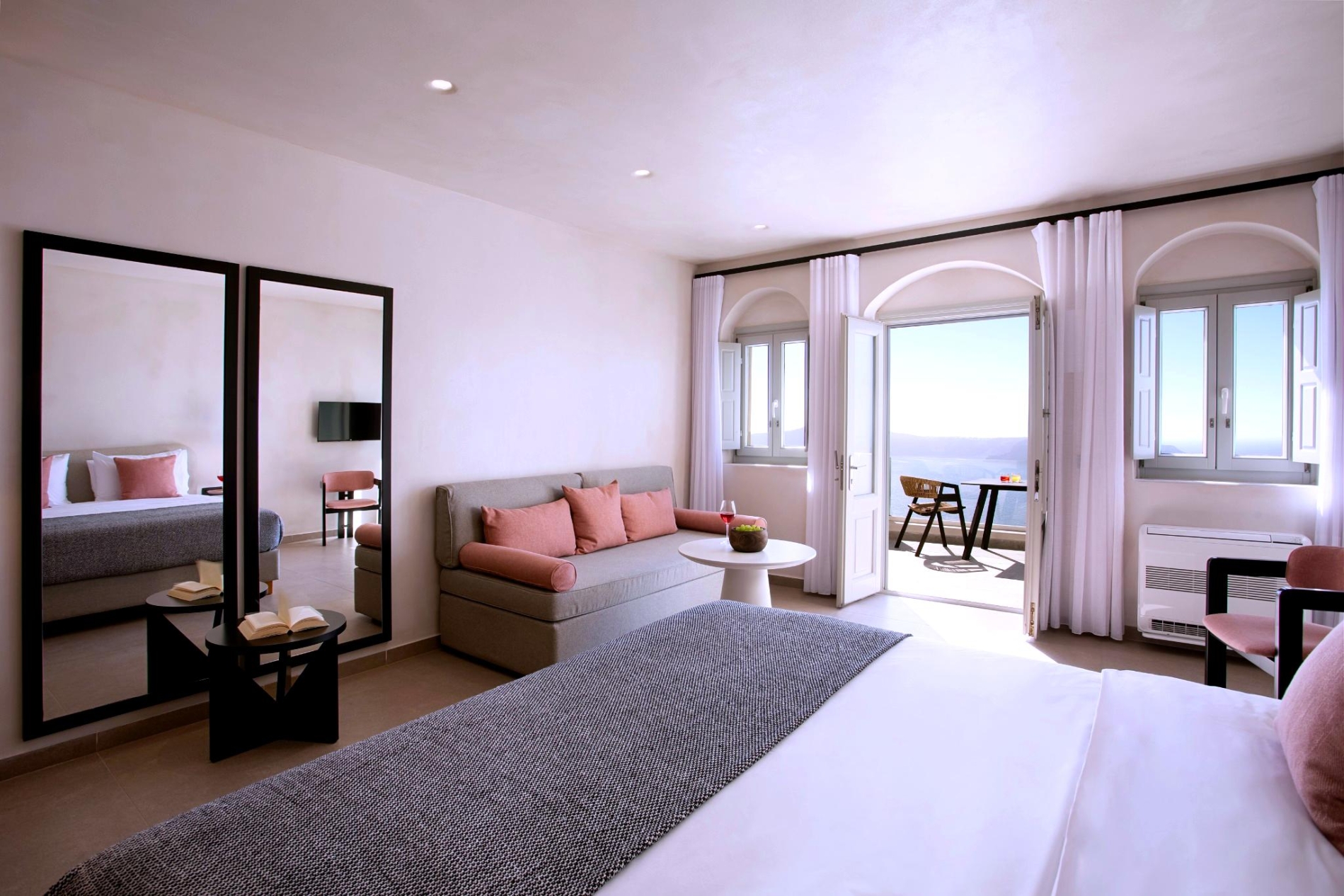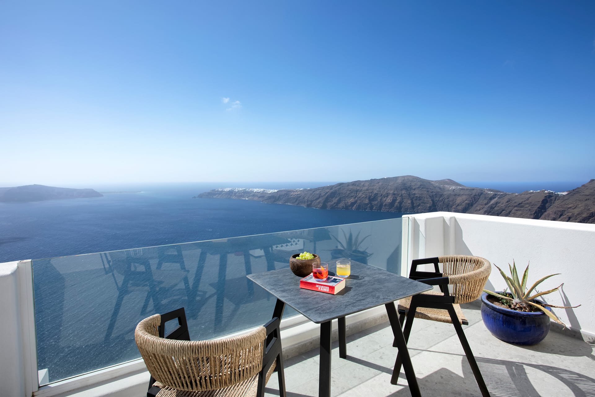 Βγείτε έξω στο ιδιωτικό, επιπλωμένο μπαλκόνι σας, όπου μπορείτε να χαλαρώσετε παρακολουθώντας τον ήλιο να δύει κάτω από τον ορίζοντα, ρίχνοντας μια χρυσή λάμψη πάνω από την Καλντέρα. Το Superior Sunset Room προσφέρει όχι μόνο έναν ξεκούραστο χώρο, αλλά και μια πρόσκληση να ζήσετε τα πιο εκπληκτικά ηλιοβασιλέματα που έχει να προσφέρει η Σαντορίνη, από την ιδιωτικότητα και την άνεση του δωματίου σας.