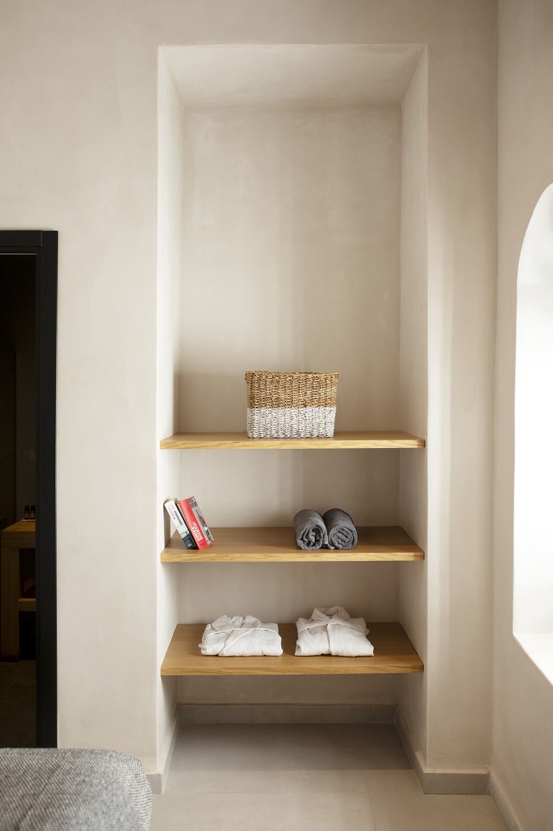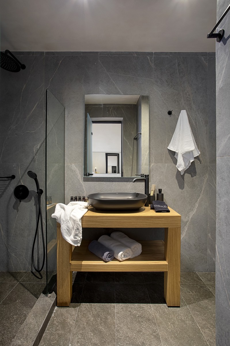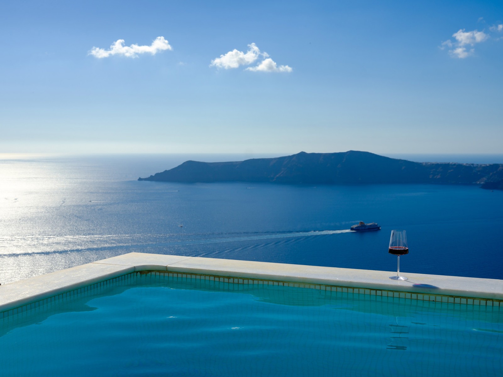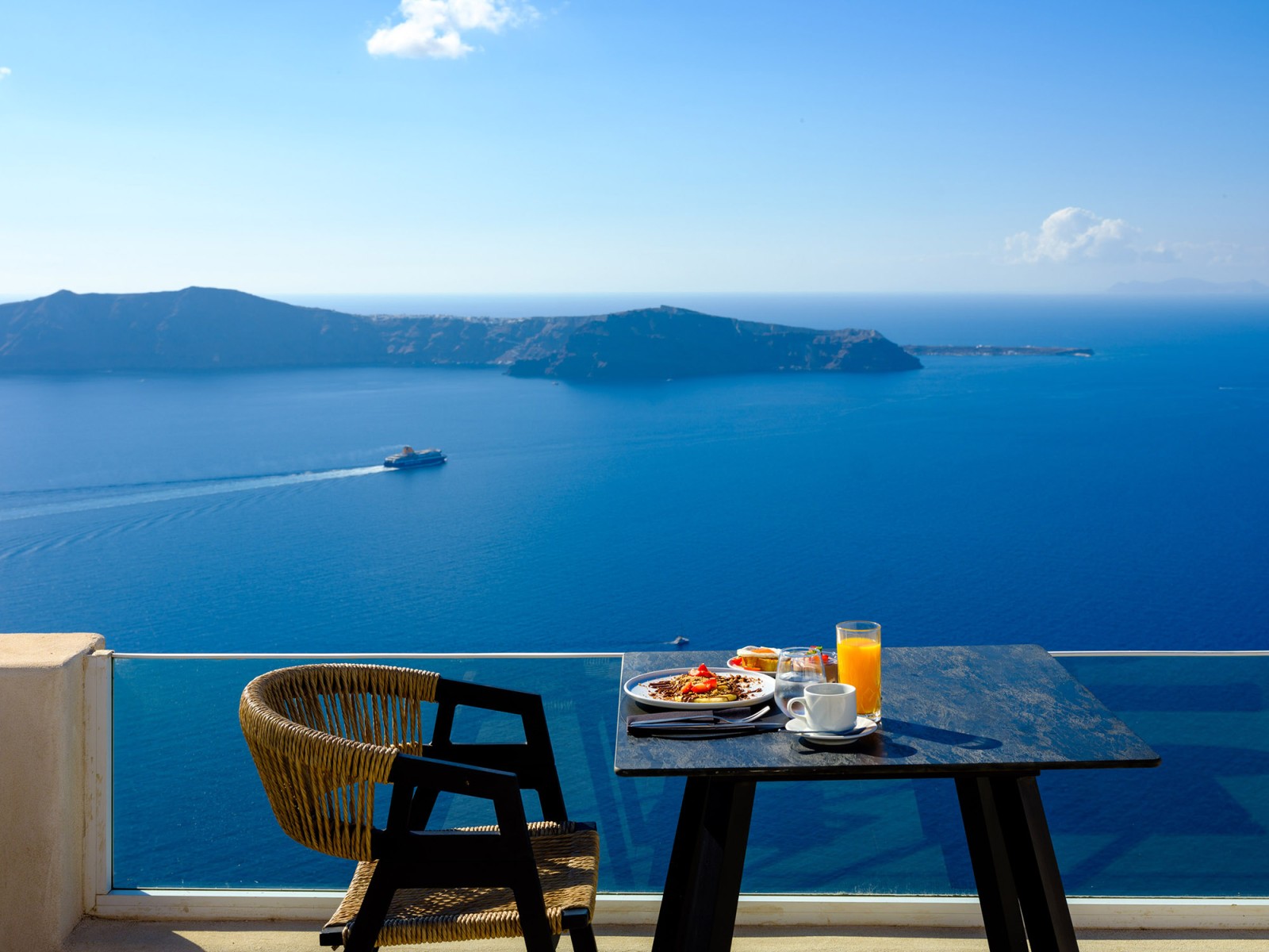 Η σουίτα διαθέτει επίσης ένα μοντέρνο μπάνιο με αναζωογονητικό ντους και ένα ιδιωτικό, επιπλωμένο μπαλκόνι, με ξαπλώστρες και ομπρέλες για απόλυτη χαλάρωση. Απολαύστε τα ζεστά νερά της εξωτερικής θερμαινόμενης πισίνας σας, απολαμβάνοντας παράλληλα την εκπληκτική θέα στην Καλντέρα και το Αιγαίο Πέλαγος.