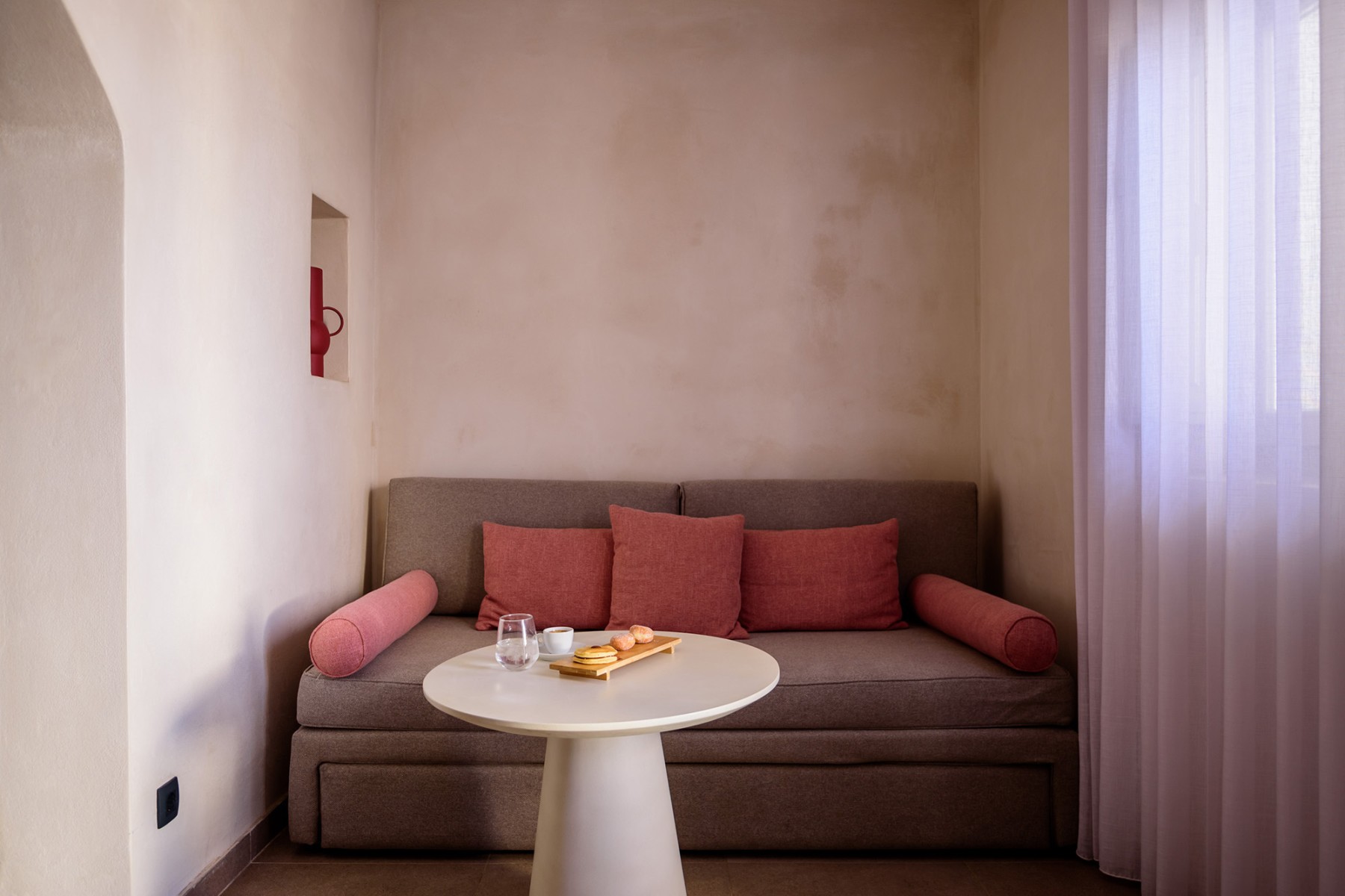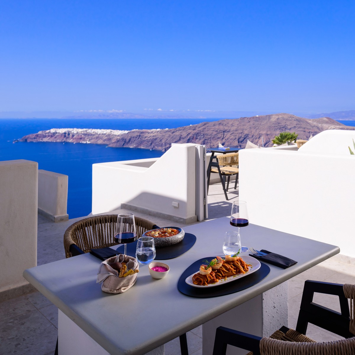 Βγείτε έξω στον ιδιωτικό σας εξωτερικό χώρο καθιστικού, όπου μπορείτε να χαλαρώσετε και να απολαύσετε την εκπληκτική θέα στην Καλντέρα - ένα εκπληκτικό σκηνικό για να βελτιώσετε την οικογενειακή σας απόδραση.