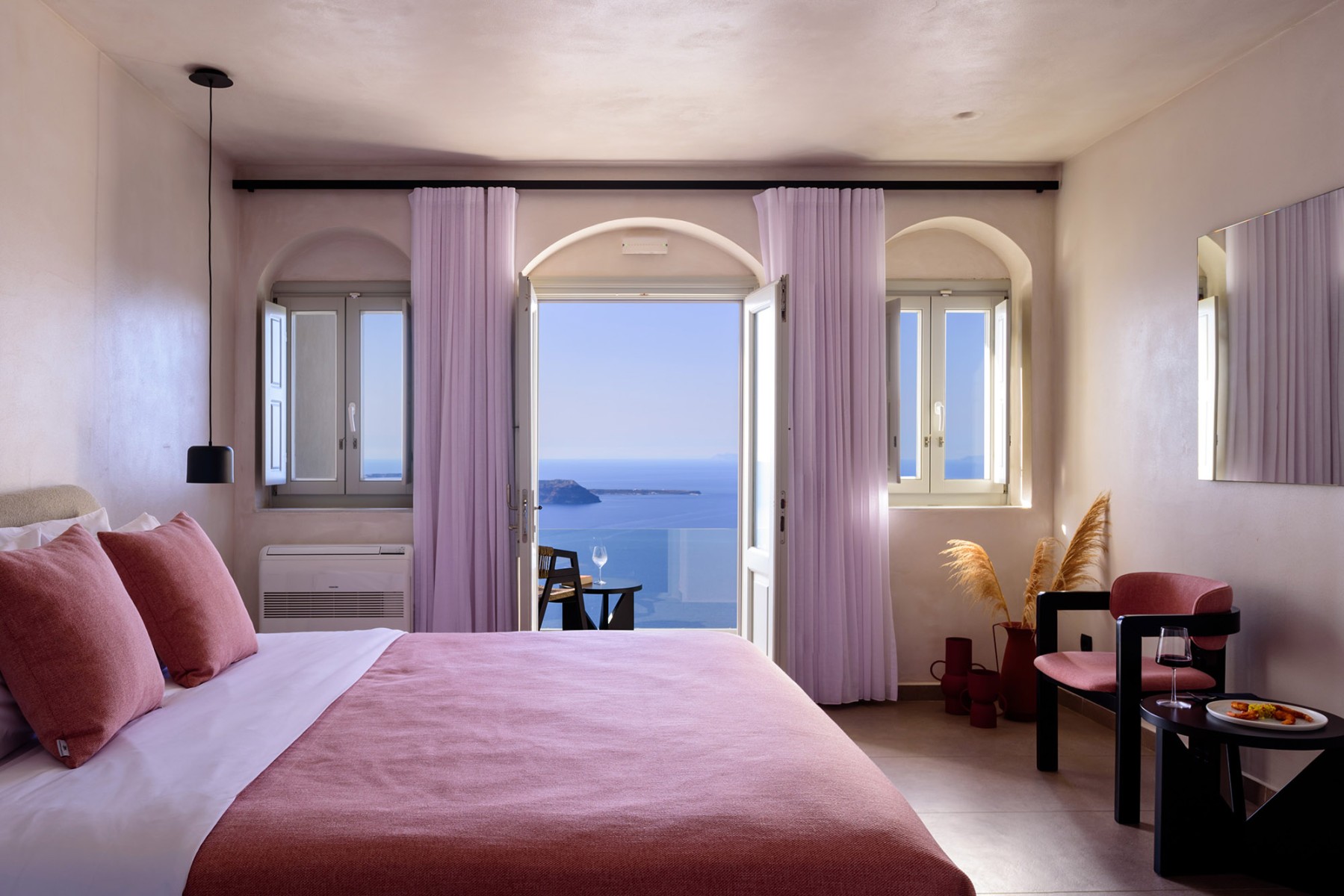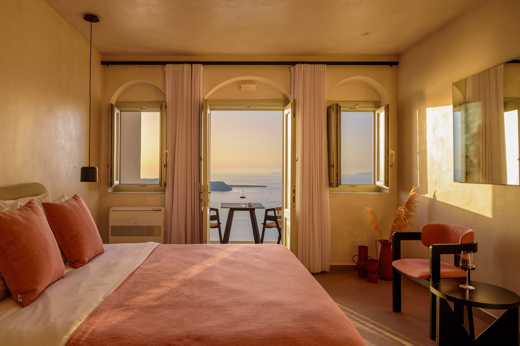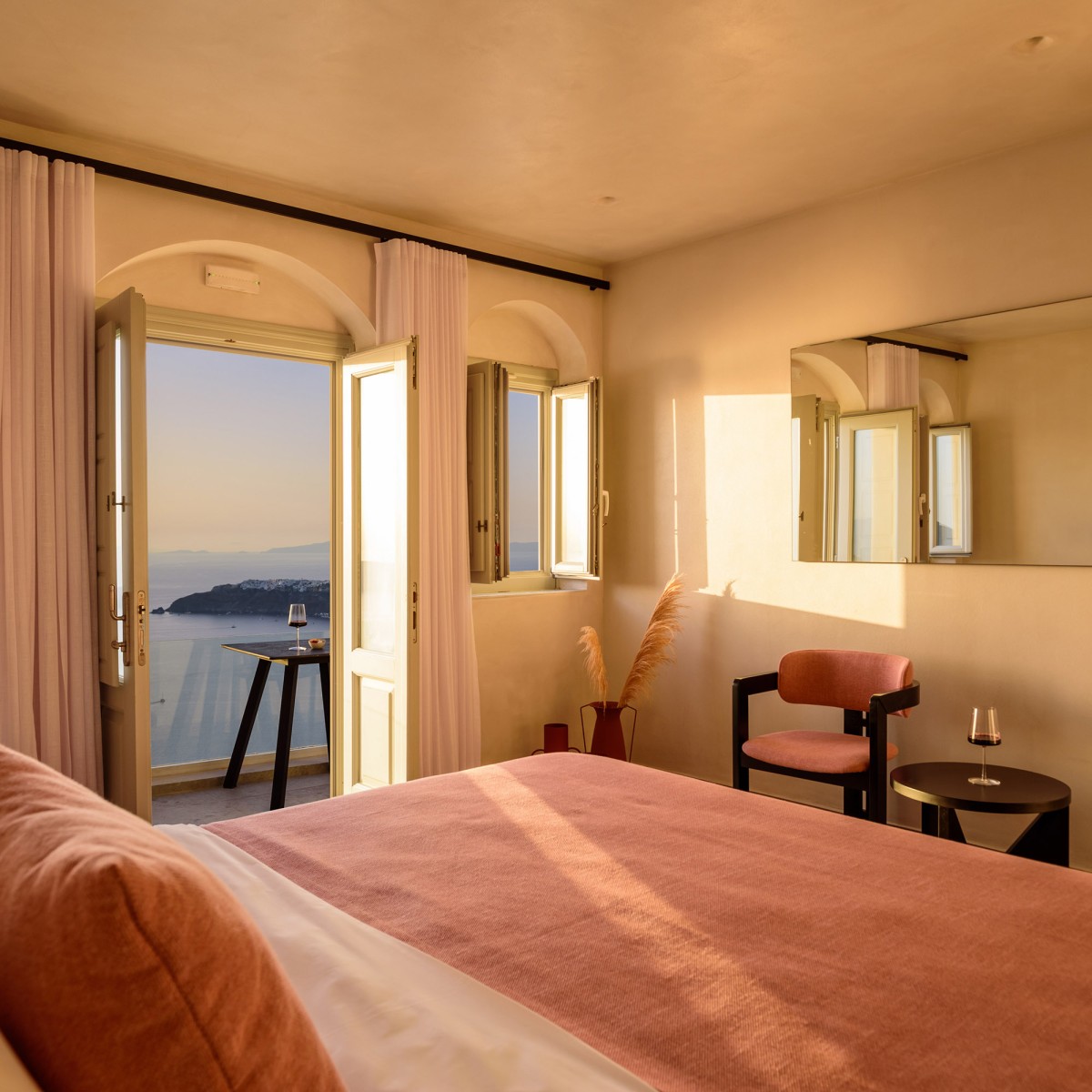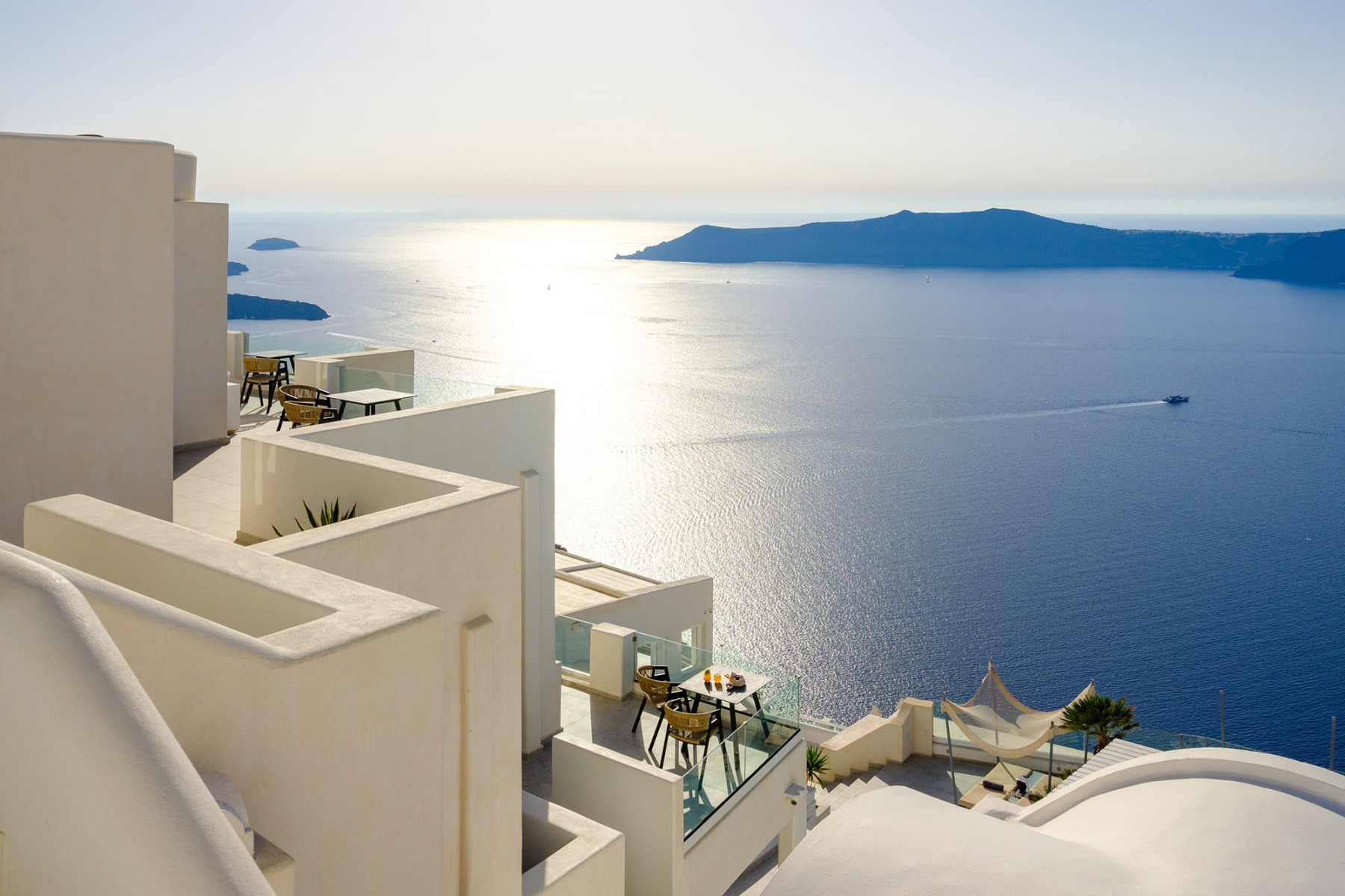 Βγείτε έξω στο ιδιωτικό σας μπαλκόνι ή βεράντα, όπου μπορείτε να απολαύσετε εκπληκτική θέα στο Αιγαίο Πέλαγος και την εμβληματική Καλντέρα - το τέλειο σκηνικό για ένα ήρεμο πρωινό ή ένα βράδυ χαλάρωσης.