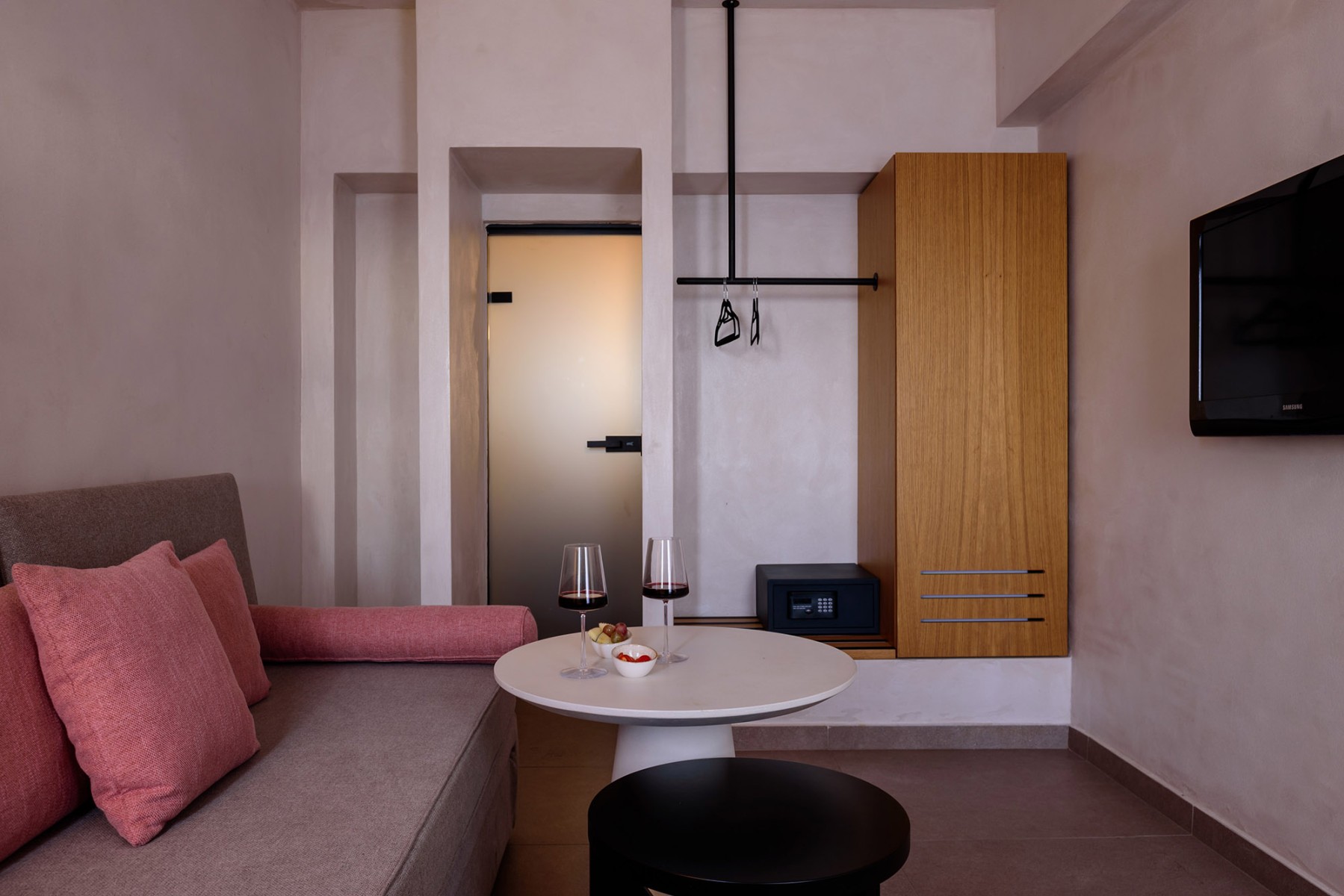 Για όσους αναζητούν έναν συνδυασμό πολυτέλειας, άνεσης και χώρου, η Elegant Suite προσφέρει ένα εκλεπτυσμένο καταφύγιο. Ιδανική για οικογένειες ή μικρές ομάδες, αυτή η ευρύχωρη σουίτα είναι προσεκτικά σχεδιασμένη για να προσφέρει την απόλυτη εμπειρία Σαντορίνης.